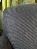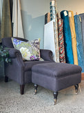 Italian Dedar Milano charcoal fabric armchair. Detail of fabric & arm detail photo shows best representation of colour.