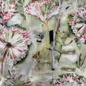 A glorious meadow pattern, with bumble bees amongst dandelion clocks. This fabric is a stunning colour combination of spring green and pinks, orange, & plum